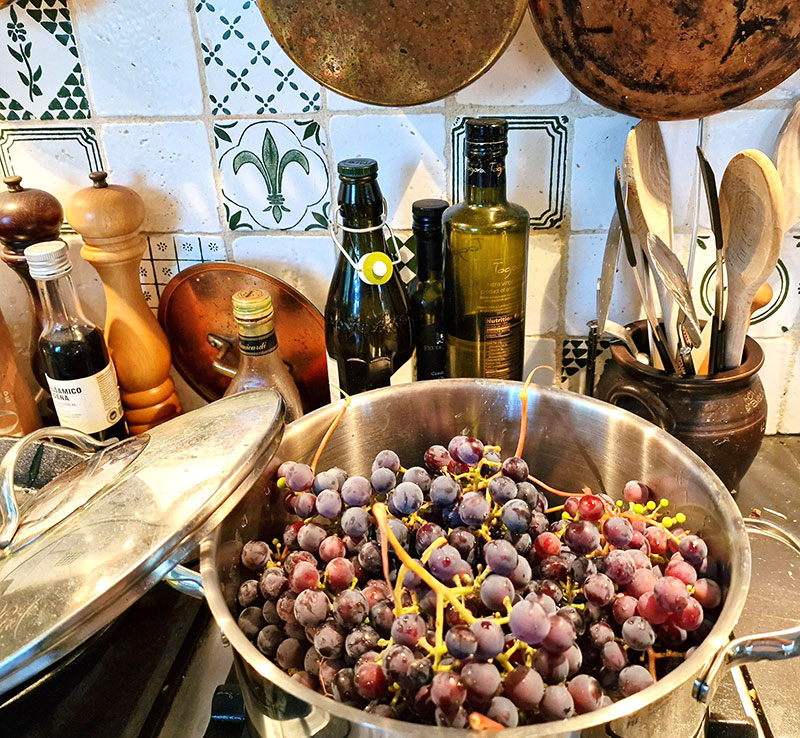 1. Lägg ner druvorna i kokande vatten och koka ca 20 minuter.