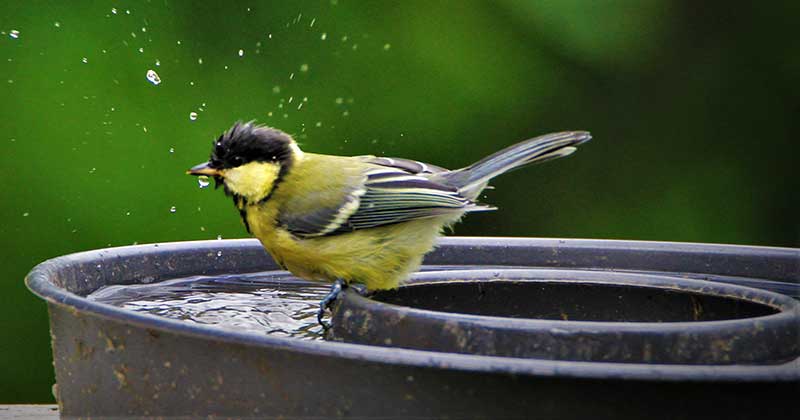 - Vatten är viktigt året om, men särskilt på vintern. Ställ vattensamlingen högt, så att inte katten når fåglarna. En vanlig, rund kakform duger bra. Om du har en damm, se till att vattnet rör sig. Ljudet attraherar fåglarna och rörelsen hindrar att det fryser.