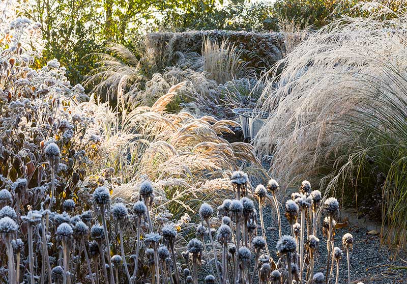 - Vintergröna barrväxter, friväxande häckar, stora prydnadsgräs och snåriga buskage ger ett ovärderligt skydd vintertid.