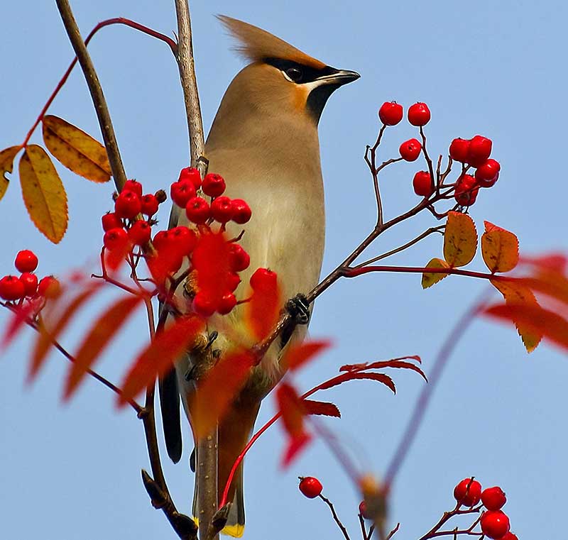 - Buskar med vinterbär som bukettapel, järnek, havtorn, hagtorn, aronia, liguster, eldtorn, nyponrosor och olvon är ovärderliga.