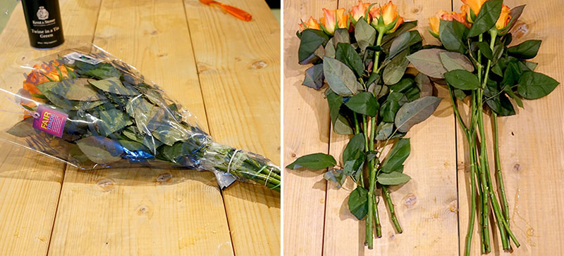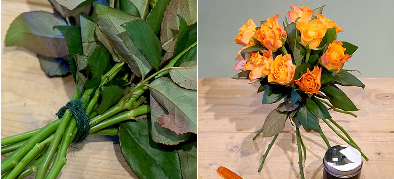 1. Se till att blommorna är saftspända, ställ dem annars någon timma att dra vatten.