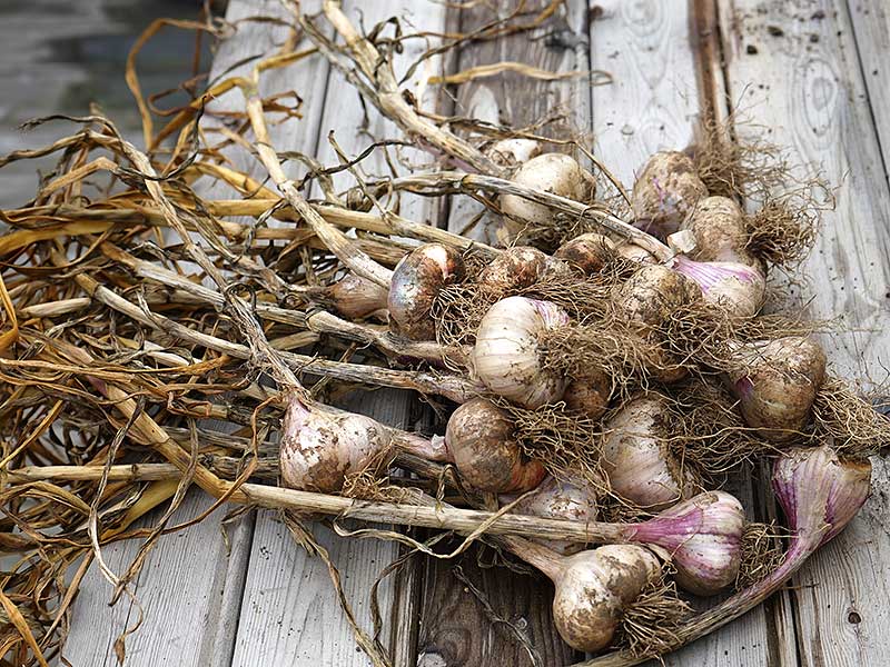 När blasten på vitlöken börjar vissna och lagt sig ner är det dags att skörda.