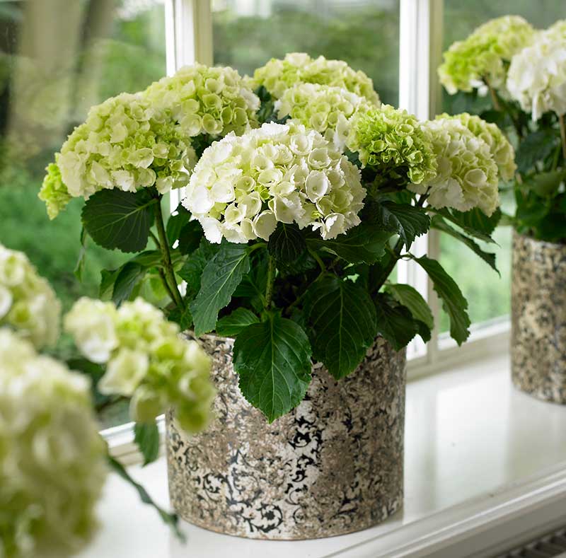 2. Ta fram krukan i mars/april och klipp eventuellt bort veka skott. Ställ hortensian ljust och den grönskar snart på nytt.