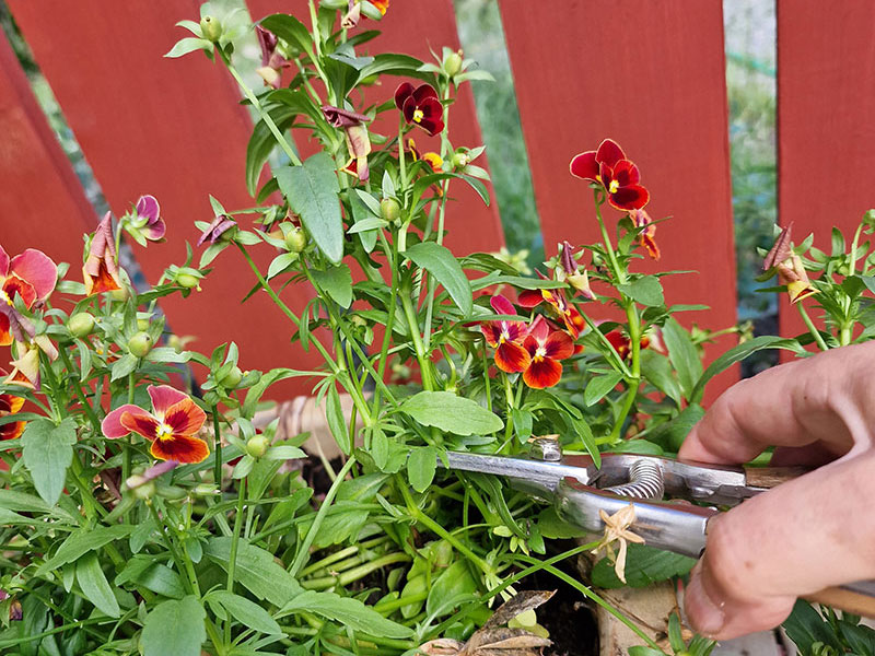 Penséer likt många rikblommande sommarblommor är lätta att föryngra genom nedklippning när de börjar tappa stinget. Klipper man ner dem ordentligt kommer de snart att växa till med mängder av nya blommor. Jag har skrivit om det tidigare i artikeln Förnya fula sommarblommor.