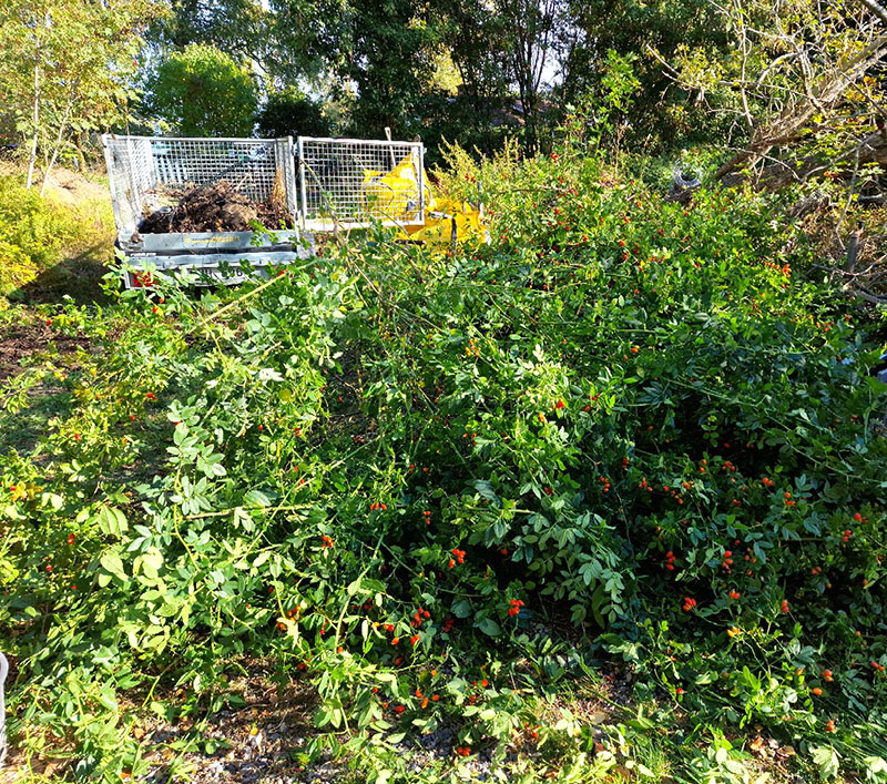Det fanns gott om plats kvar på släpet så jag passade på att skära ner en ros som nästan helt tagit över en plantering där den säkert täckte över 6kvm.