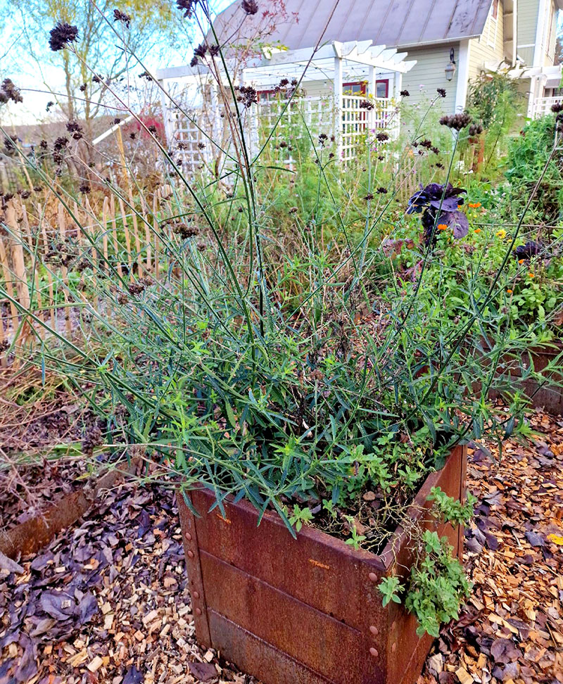 Först på agendan stod att gräva upp jätteverbena och Järnört, Verbena 'Bampton' för att övervintra i växthuset.