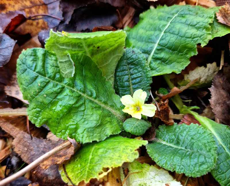 När jag höll på i kökslandet för att flytta in alla myntor som odlas i stora lerkrukor tittade en liten lundviva fram med blomma och allt.
