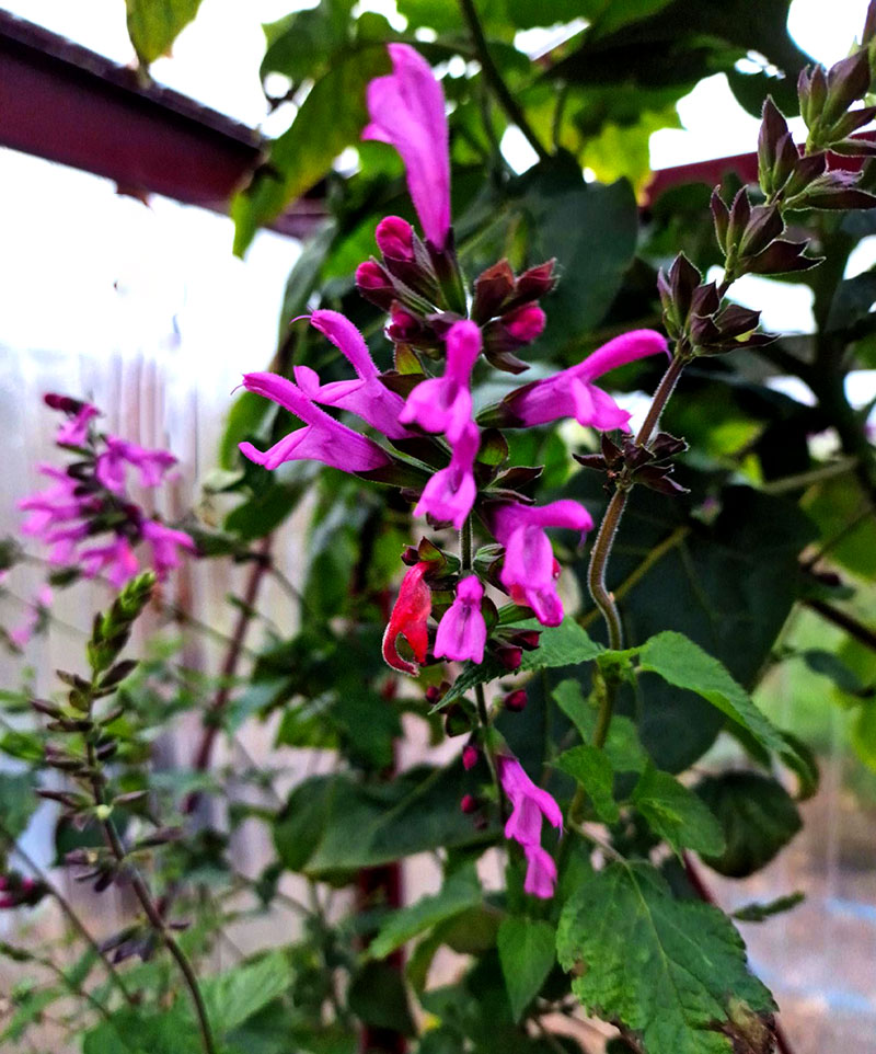 Salvia microphylla ‘Delice Aquamarine' överraskar med fantastiskt fin färg på blommorna. Inte tokig alls.