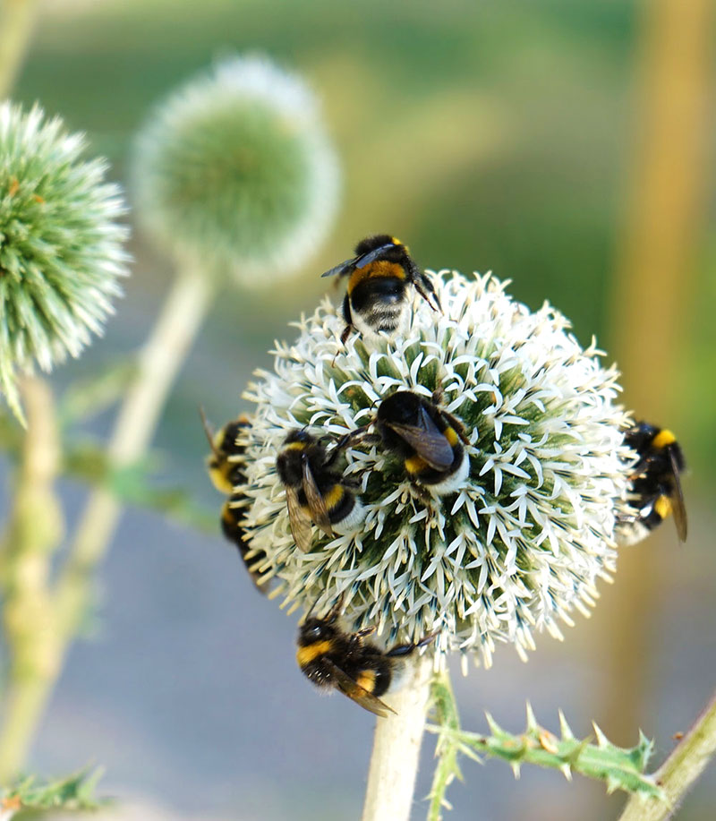 Visst finns det växter som är mer eller mindre attraktiva för dessa trevliga pollinerare, men jag tror nästan att bolltisteln tar priset.