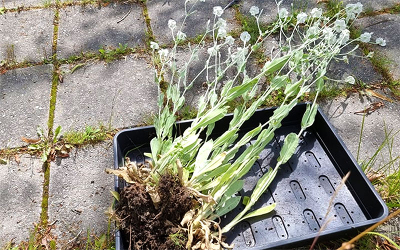 Så denna varma sommardag står jag istället på knä i gången och gräver upp planta för planta för att rädda och flytta dem till en av mina nya rabatter. Min favoritspade Hand Transplanting Trowel är helt perfekt för att gräva upp små frösådder med sin spetsiga form.