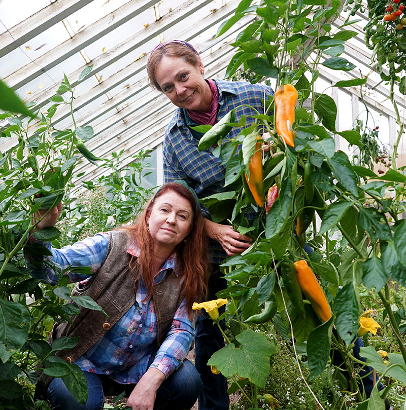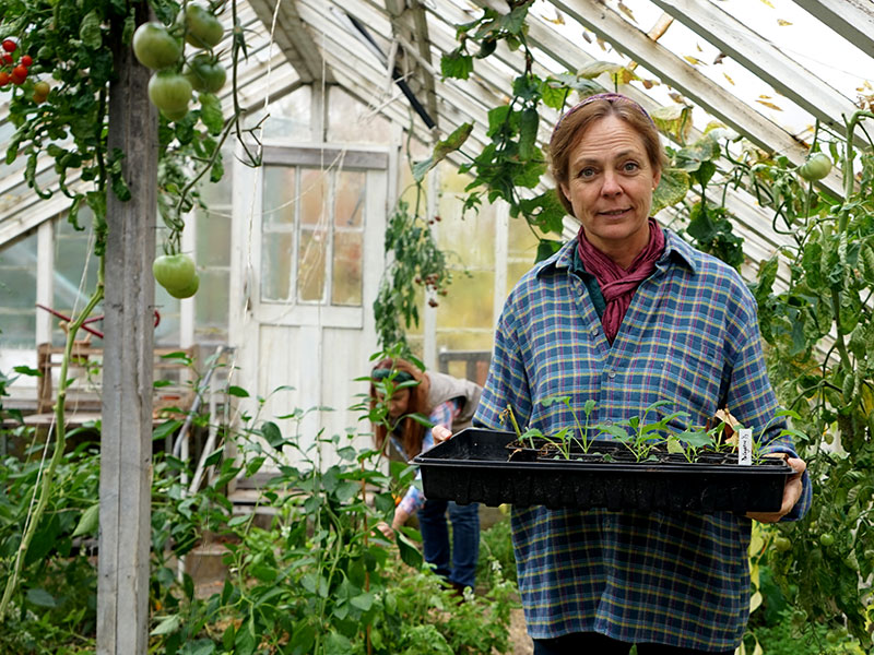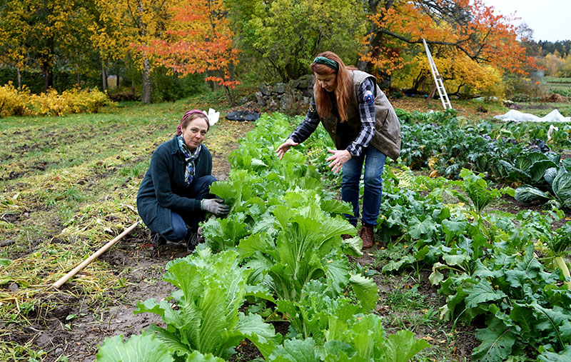 Nedanför växthuset ligger grönsaksodlingarna som sköts av andelsföreningen Förädlad