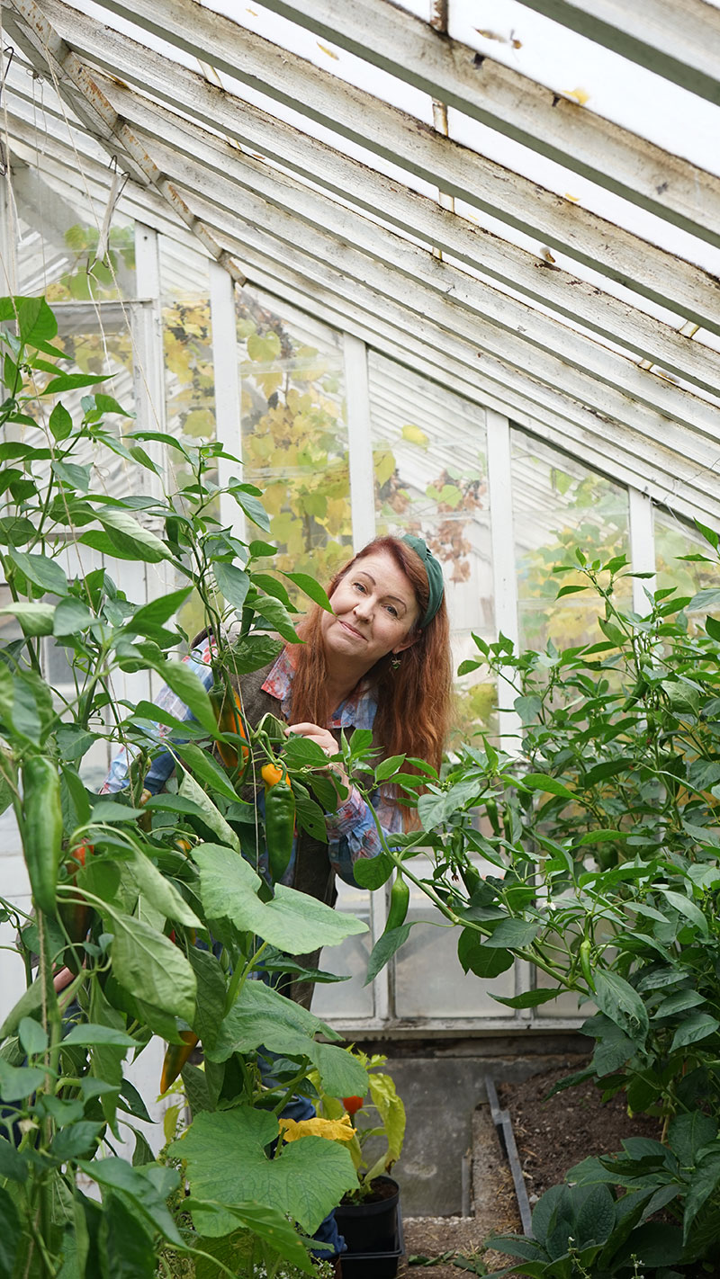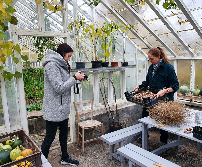 Det behövs alltid bilder med lite olika motiv och känsla så vi åkte ner till Ytterjärna Trädgårdspark där de har ett vackert gammalt vitmålat växthus. Jag känner Paula som är ansvarig trädgårdsmästare där så det var inga problem att få låna det några timmar.