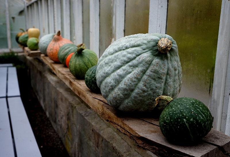 I växthuset låg fina pumpor på rad. Vilka skönheter!