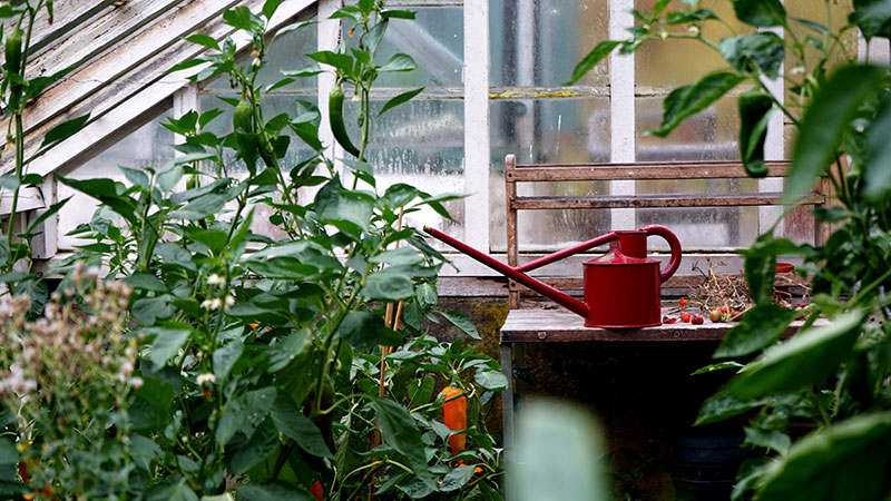 Här håller jag på att plocka fram lite rekvisita med bland annat en vattenkanna från Haws.