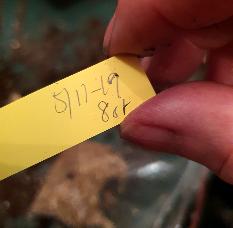 Plantetikett med datum och antal sådda frön