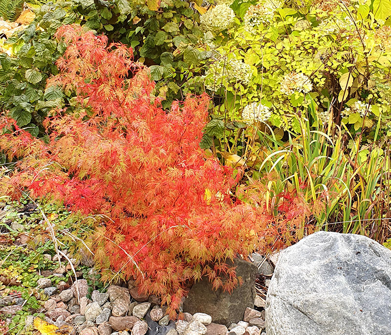 När solen tittar fram skiner de nästan som ädelstenar. Du hittar många fina lönnar i vårt sortiment med prydnadsbuskar.