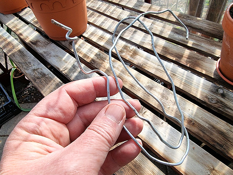 Fick lite feeling och provad om jag kunde bocka till ståltråden för att som lite krukdekor. Det ser ju lite tomt ut i krukorna nu i början av säsongen när växterna är låga och ingenting blommar än.