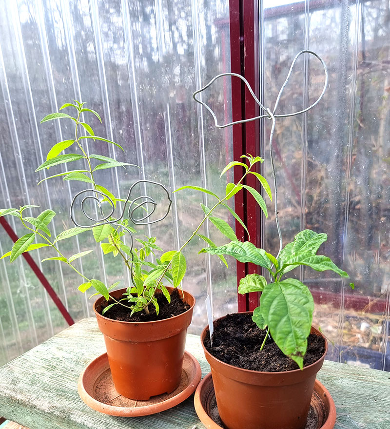 I helgen städade jag hyllorna i växthuset. Förutom en massa krukor hittade jag en låda med "bra-att-ha-grejor". Växtetiketter, pennor och lite uppbindningssnöre som ju alltid konmer till användning.