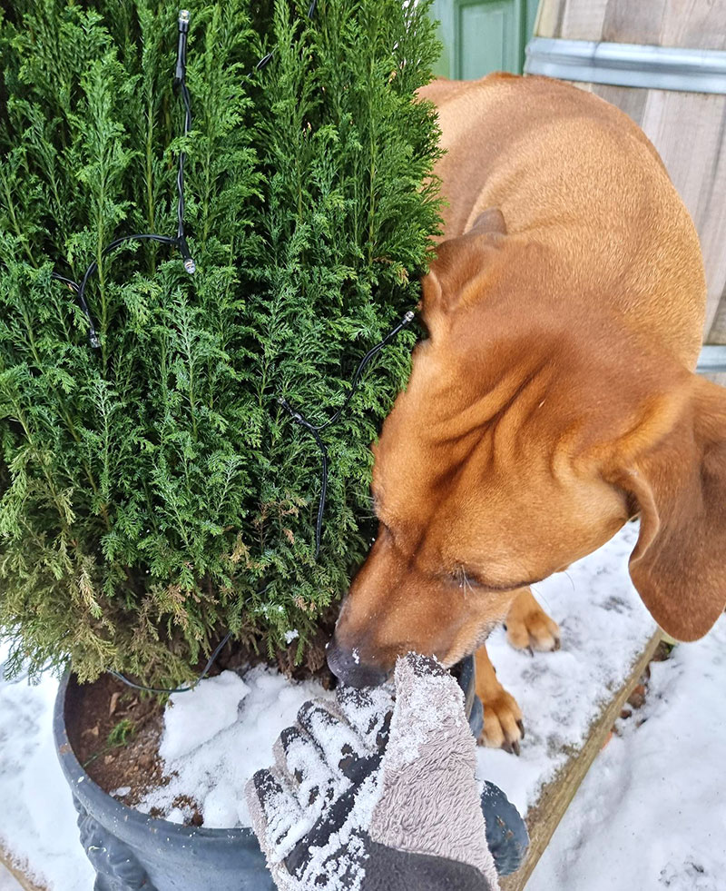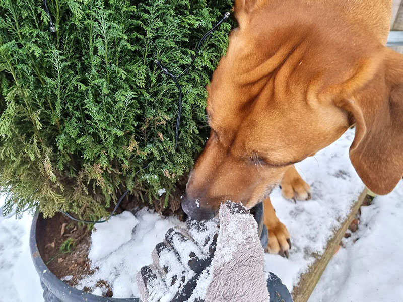 Sedan några dagar ligger snön igen och den lär väl komma och gå några gånger till. Jag passade på att stoppa snö i krukorna med tuja och buxbom. Det är ju en kritiskt tid nu får många växter och särskilt de vintergröna. När solen börjar värma försöker de dricka vatten, men jorden är fryst så de riskerar istället att torka. Med lite snö i krukan får de vatten när det töar. En liten hjälp på vägen. Säkrast är det att täcka dem (se förslag på skydd i vårt sortimet av Skuggning och skydd) och vattna lite försiktigt när solen börjar ligga på. Läs mer i artikeln Övervintra växter i kruka utomhus.