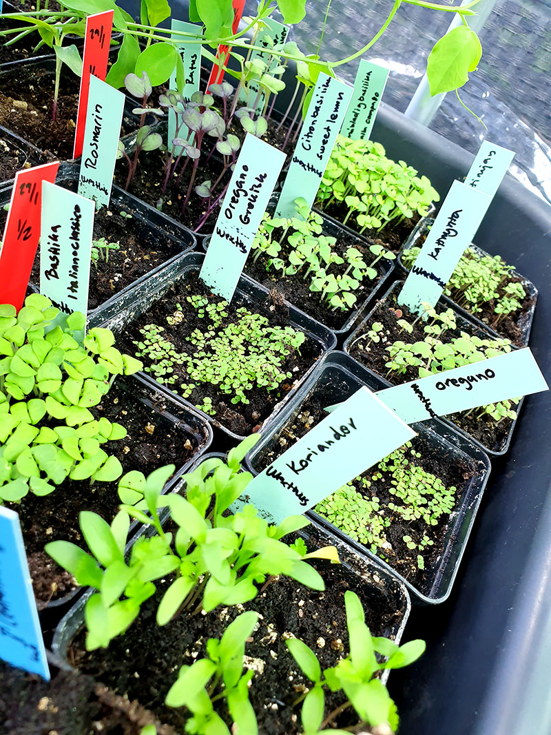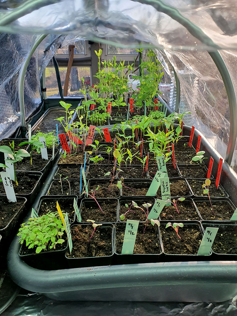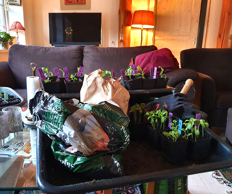 Tack vare undervärmemattan har odlingarna kunnat starta extra tidigt även i detta sparsamt uppvärmda utrymme.