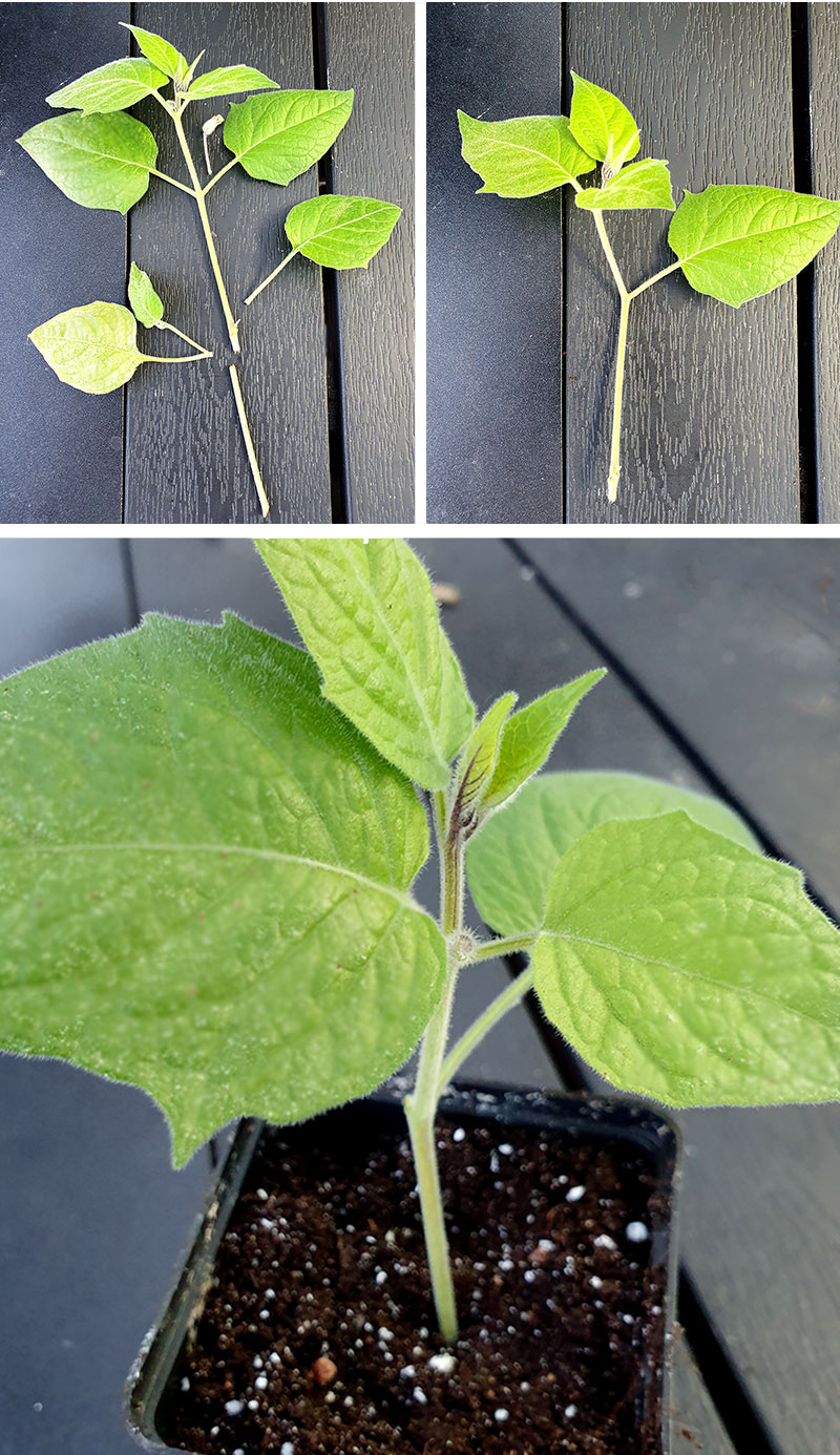 Vi klippte av en topp och satte som stickling i minidrivhuset.