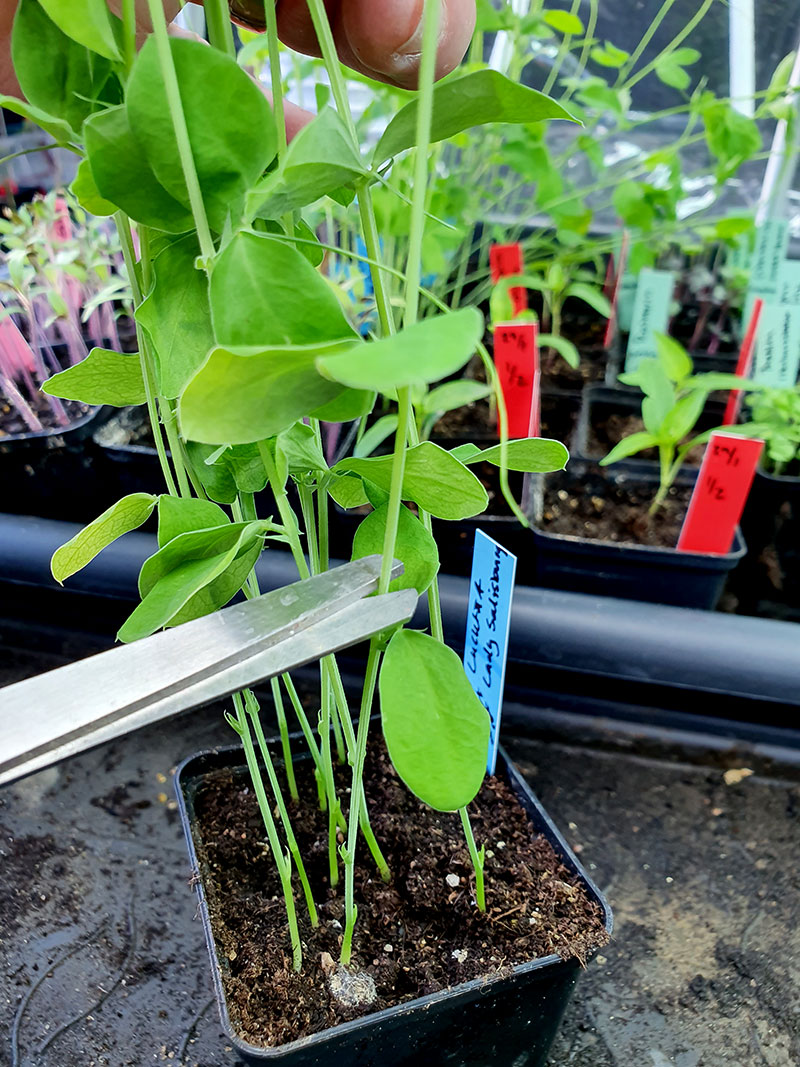 Frösådda luktärter som behöver toppas. Frö till luktärter hittar du här.
