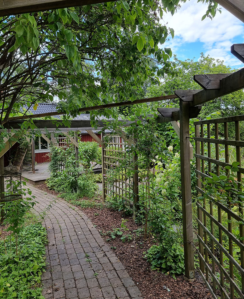 Nu blandade jag till en deciliter och penslade på där jag missat så snart ser hela pergolan lika patinerad och fin ut.