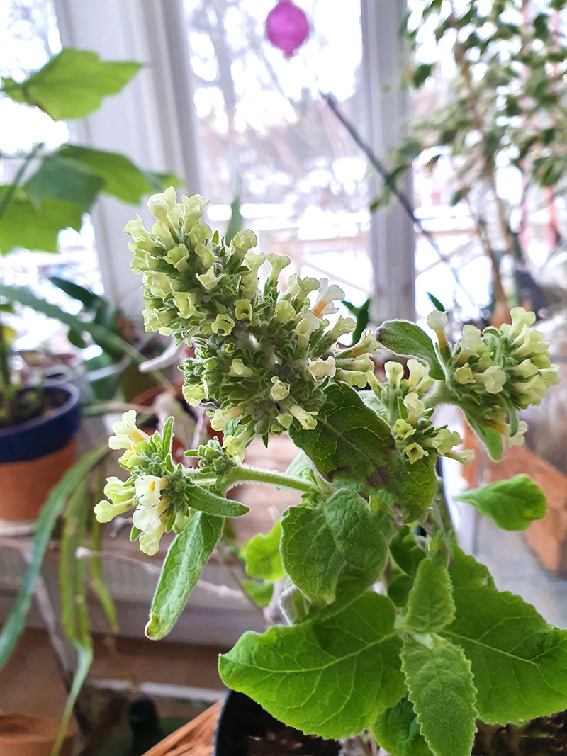 Jag har en glasveranda där jag har det lite svalare än i resten av huset. På vintern ställer jag in växter som föredrar att ha det lite svalare än rumstemperatur och bland dem också en buddleja jag plockade in först några veckor innan den riktigt kalla vintern kom.