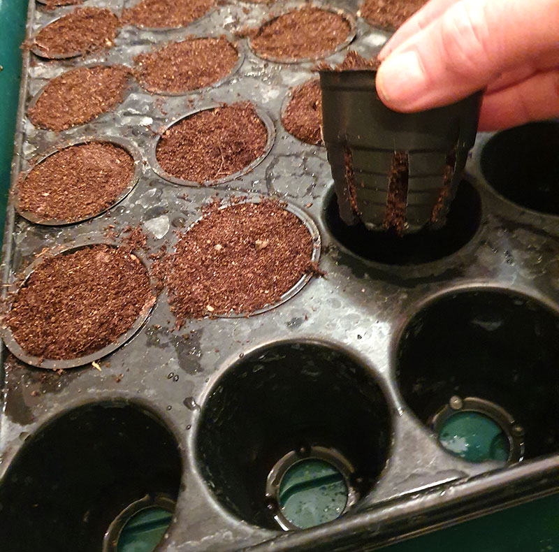 Den här gången hade jag ganska många sticklingar så jag valde att sätta dem i nätkrukorna som passar perfekt i brättet med 35 celler.