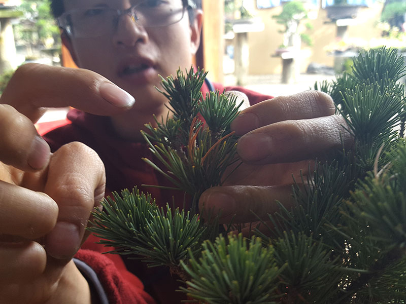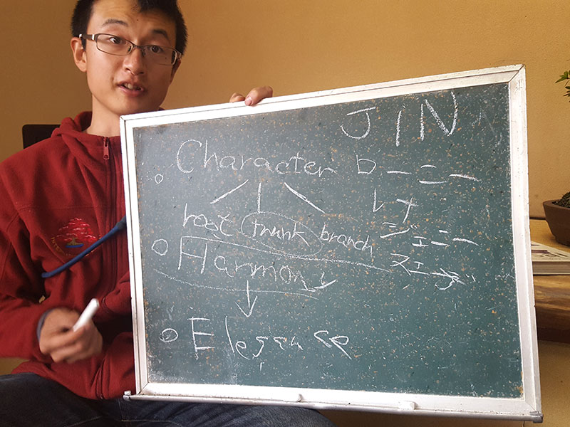 Vår lärare hette Jin. Han har utbildat sig och jobbat med bonsai i 5 år.
