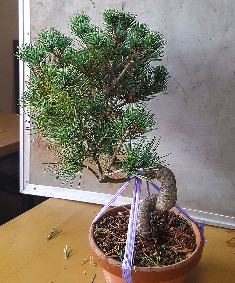 Med en hel del vägledning blev det jättefint och jag tyckte redan det såg ut som en fin bonsai, men det var mycket jobb kvar skulle det visa sig.