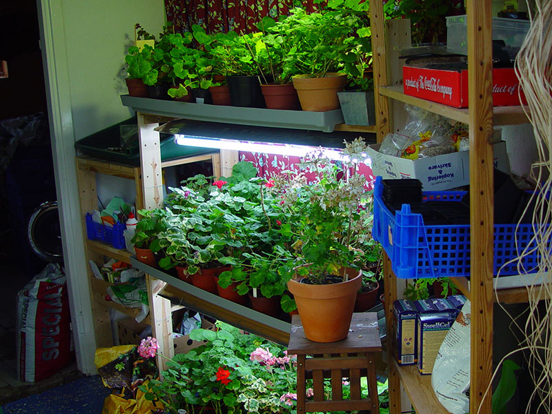 Redan för 20 år sedan odlade jag mycket på hyllor med växtlampor för att få plats. Här produktion av sticklingar inför första deltagandet på mässan Nordiska Trädgårdar.