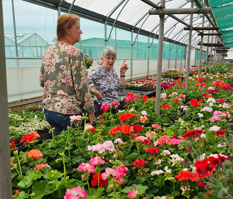 Allra mest uppskattade jag dock ett långt samtal med Ursula som drivit stället de senaste decennierna. Hon började hjälpa sin mamma i växthusen redan som tioåring och hela hennes liv finns här. Nu drar hon sig tillbaka från det tunga arbetet. Men inte kan hon släppa pelargonerna. Hon kommer fortsätta genom att att hjälpa till i ett närliggande nursery där många av pelargonerna i samlingen nu fått ett nytt hem.