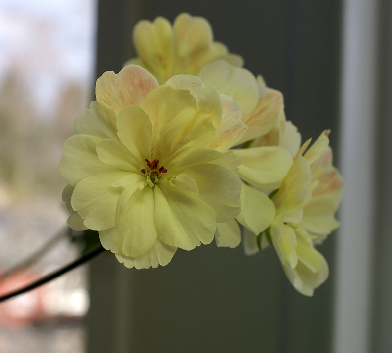 Jag hade hoppats få med mig några av de många speciella sorter de har haft i sin samling och samtidigt också hitta några av de sorter jag själv korsat fram som jag av olika anledningar inte har kvar längre och kunde resa hem med flera pärlor. Inte minst är jag väldigt glad att återse zonarticpelargonen 'Unicorn Hot Butter' som har en fin gul färg som ses på bilden ovan. Med ålder bleknar dock blomman till en ljusare gul nyans.