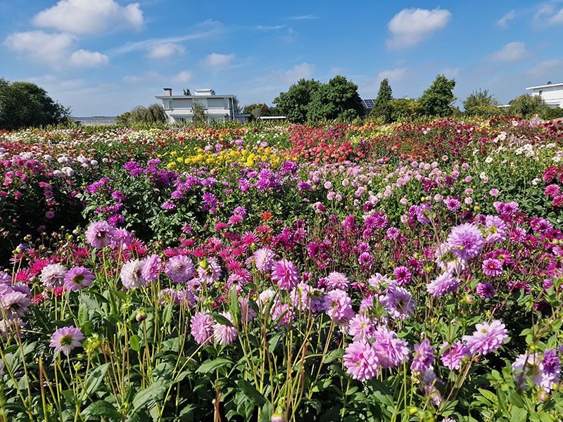 Förutom att det var stekande hett var det väldigt jobbigt att se den ena sorten efter den andra som jag bara måste ha! Men också väldigt intressant där jag nu kunde se över och få ett bra underlag till vårt nya sortiment av dahlior till 2023. Så håll utkik, spännande nyheter utlovas!