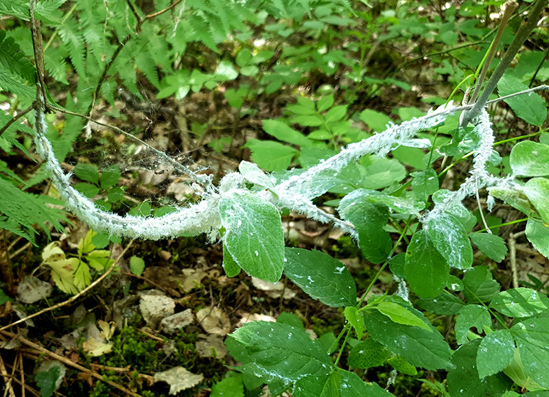 Inspirerad av Lindas bild letade jag upp några bilder jag tog i juni när jag gick i skogen en bit bort. De är verkligen håriga, eller ludna kan man kanske säga. Jag trodde även här först att det någon sorts svamp med yvigt mycel, men inser efter en del research att det är något som på engelskspråkiga hemsidor benämns Woolly Aphids, ulliga löss (inte ullöss som heter mealybug på engelska).