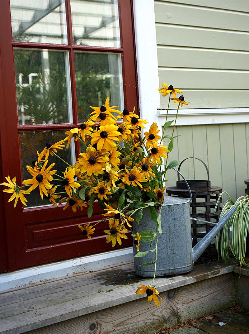 En fin vattekanna kan få ledigt från vattnandet också andra tider på året tycker jag. Här är en av mina vattenkannor knökfylld med vackra, gula höstrudbeckor.
