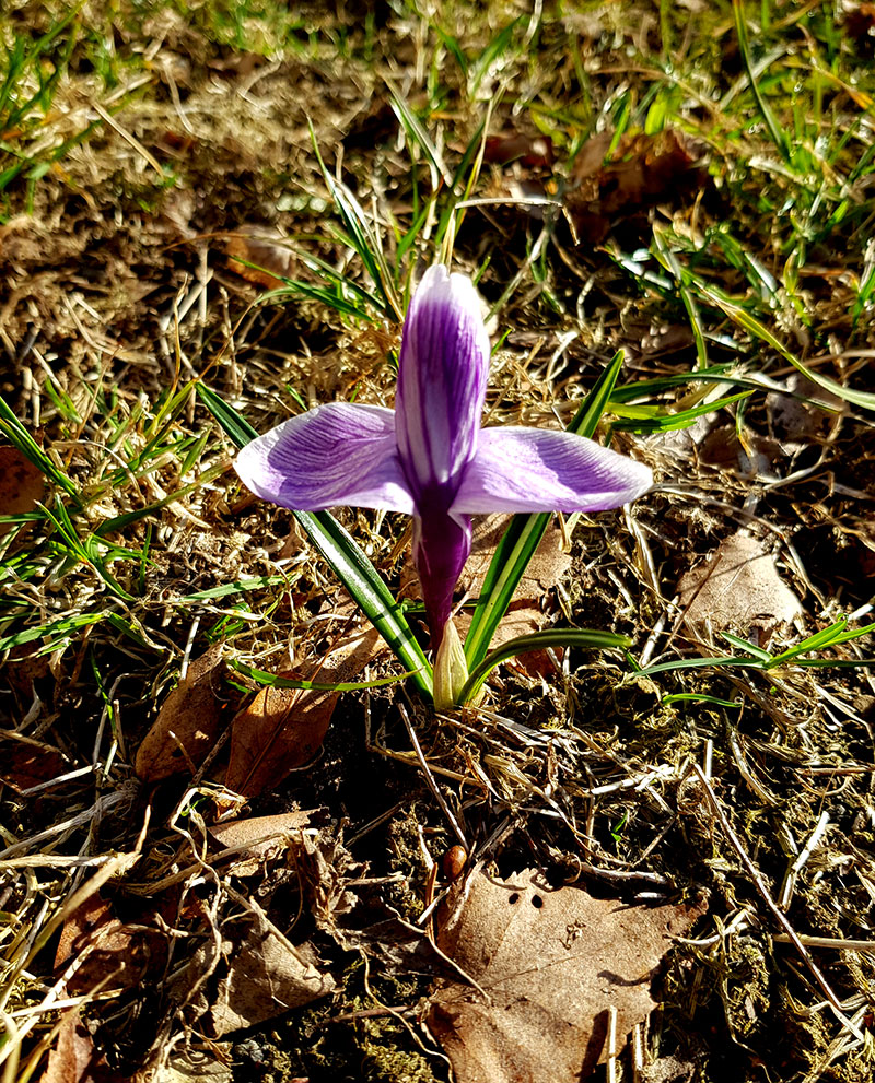 I trädgården hittade jag en krokus som stod helt för sig själv och försökte likna en våriris. Jag tycker den lyckades ganska bra J