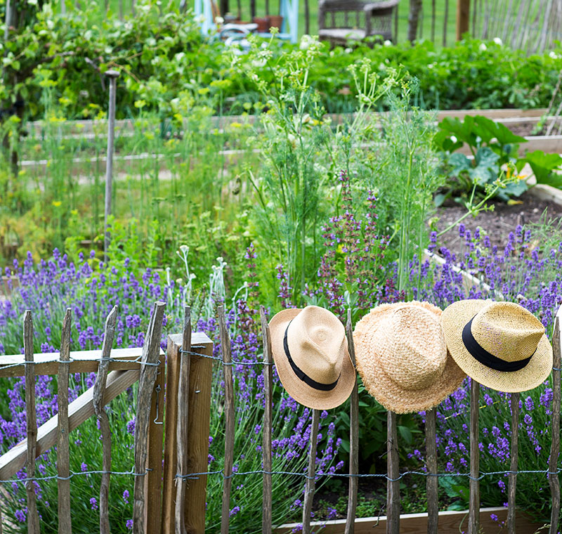 Här frodas odlingslusten. Blommor är viktiga i en köksträdgård, de attraherar pollinerare och är användbara. Av lavendel gör man enkelt eget badsalt och härlig massageolja - förutom att de är goda i skorpor.