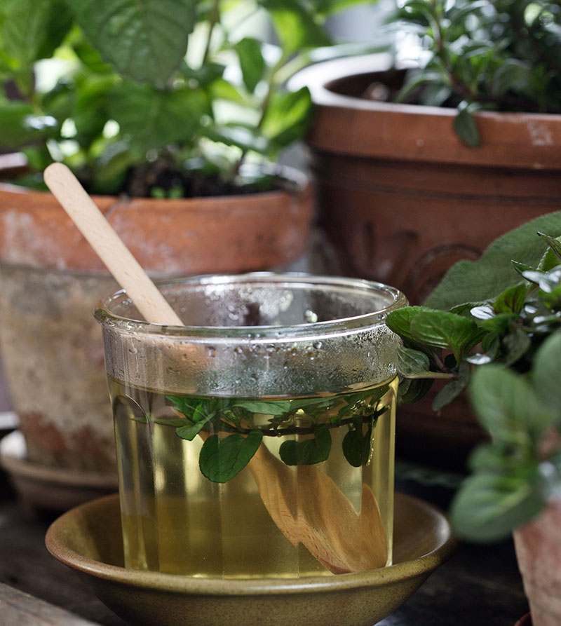 Hemodlat te är hälsostärkande lycka. Många växtslag är användbara som myntor, citronmeliss, kamomill, fläder och svarta vinbär.