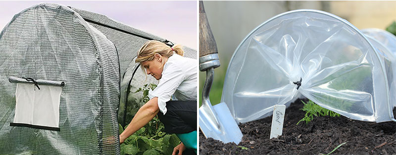 Odlingstunnlar är behändiga sätt att skapa en skyddad odlingsmiljö i både rabatt och pallkrage. De sätts upp på ett kick och kan sedan enkelt tas bort när värmen kommit på riktigt. Vi har varianter i både XL och miniformat som passar frösådder. Tunnlarna är också perfekta i kallt klimat under sensommaren om tidig frost hotar.