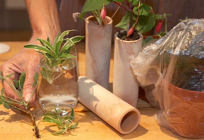 - Avläggare. Plantan bildar småplantor via långa revor. Bara att klippa av från ”navelsträngen” och plantera i ny jord. Bäst metod för ampellilja och Arons skägg.