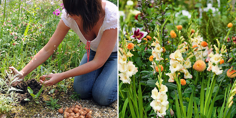 Sommarblommande lökar och knölar som dahliaknölar och gladiolus är sensommarens och hela höstens mest sprakande blommor. Plantera dem direkt om våren är varm och tidig. Tre gånger så djupt som knölens höjd är ett bra riktmärke. De trivs i de flesta jordar som är väldränerade. Stående fukt är det värsta de vet, då ruttnar knölen.