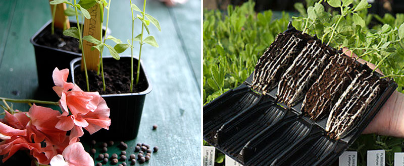 - Luktärter har ömma tår och rötterna tycker inte om att planteras om. Så i pluggar med djupa celler som är avlånga krukor och som kan öppnas som en kassett när det är dags för omplantering. På så sätt trycks inte rötterna ihop om du sedan gräver en tillräckligt djup grop för plantan vid utplatneringen.