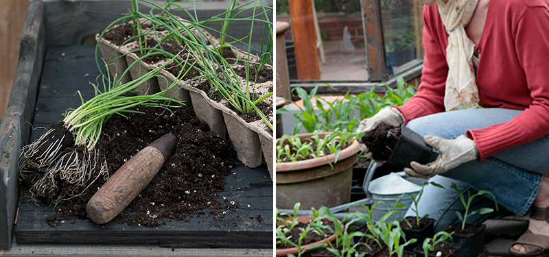 - På löken ser man små sidolökar som sitter kring moderlöken. Pilla loss dem och se till att få med rötter eller rotanlag från bottenplattan (kallas lökkaka).