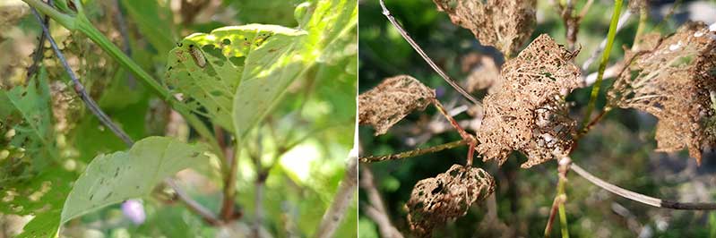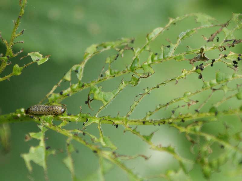 Först syns bara enstaka hål på bladen, men snart är busken alldeles kaläten.
