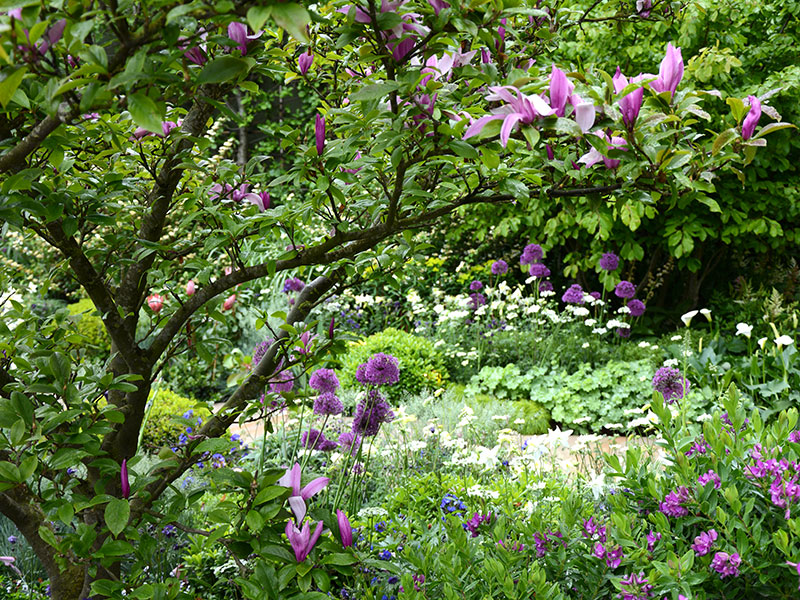 Genom att odla växter som djur inte åter söker de sig till andra områden där mer aptitliga växter finns. Här prunkar magnolia, akleja, fingerborgsblomma och bollök som brukar klara sig från att bli uppätna.