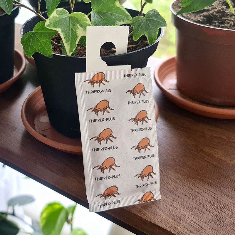 Ett bra sätt att förebygga angrepp av trips är att sätta ut små påsar med tripsrovkvalster.