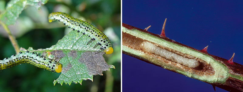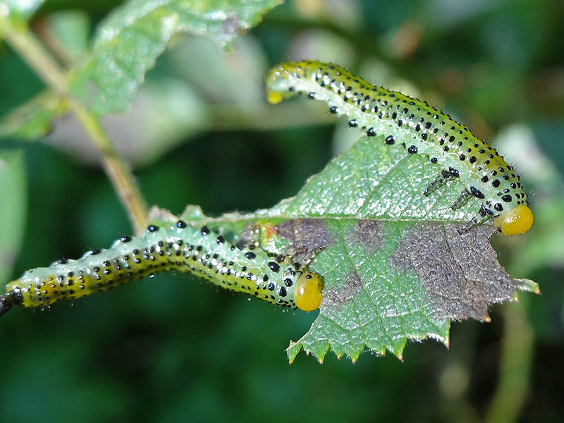 Den stora rosenstekelns larver kan snabbt kaläta en buske.
