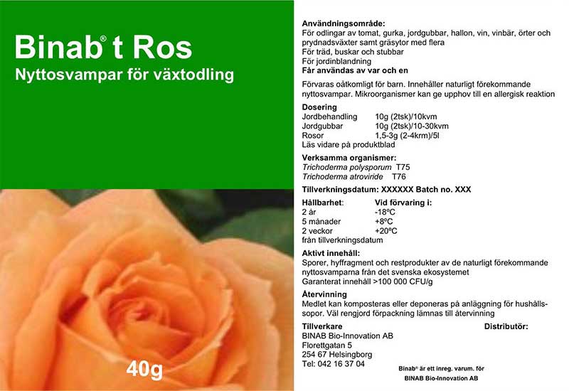 Binab t Nyttosvamp är ett koncentrat av dessa Trichodermasvampar och levereras i pulverform som späds ut i vatten för behandling.